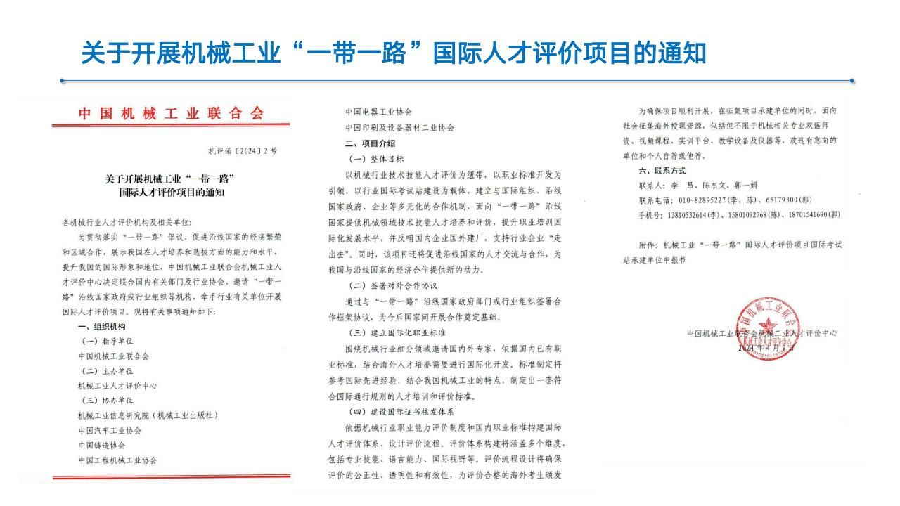 上一篇:關(guān)于征集機(jī)械工業(yè)“一帶一路”國(guó)際人才評(píng)價(jià)項(xiàng)目-國(guó)際化職業(yè)評(píng)價(jià)規(guī)范、課程標(biāo)準(zhǔn)與數(shù)字課程開發(fā)立項(xiàng)單位的通 下一篇:關(guān)于召開2024裝備制造業(yè)發(fā)展大會(huì)-技能出海 產(chǎn)教同行專題論壇通知