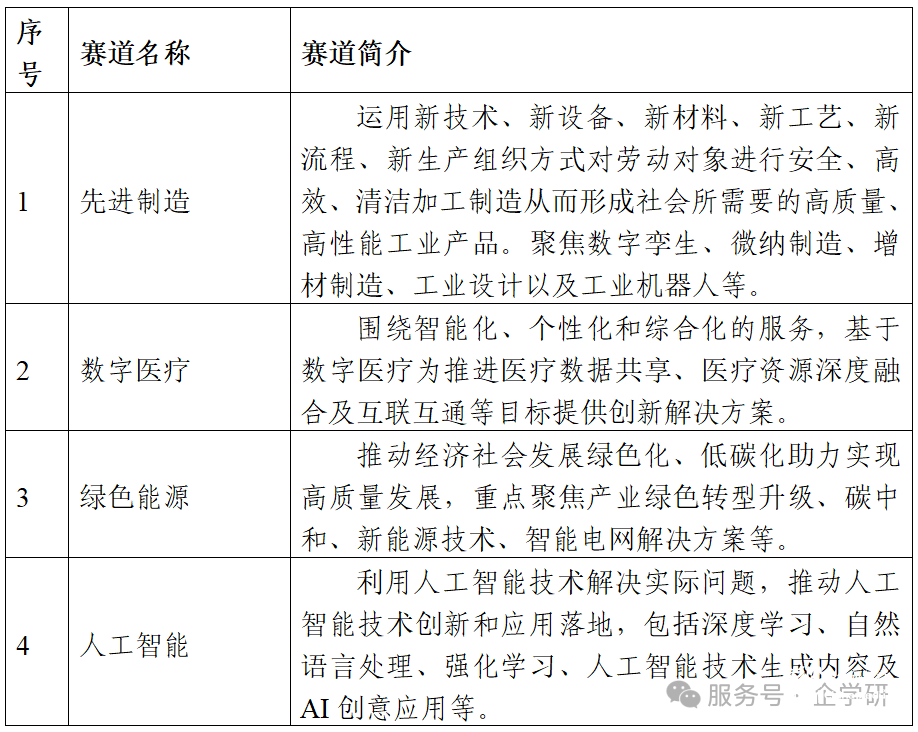 表1技術創新賽賽道列表