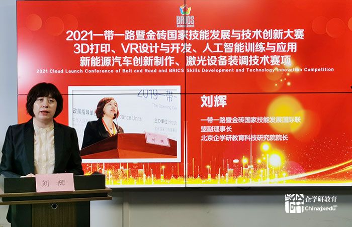 會議首先由北京企學研教育科技研究院院長、一帶一路暨金磚國家技能發展國際聯盟副理事長劉輝致歡迎詞,劉院長提到企學研作為一帶一路國際聯盟副理事長單位和金磚大賽賽項主承辦單位自2017年大賽起至今,4年共完成15賽區24賽項835參賽單位的報名、培訓、選拔、決賽相關工作,并組織南非、俄羅斯、印尼、奧地利、老撾、斯里蘭卡、巴基斯坦、孟加拉、柬埔寨巴基斯坦、坦桑尼亞、孟加拉、越南等金磚及一帶一路國家選手和專家競技交流。